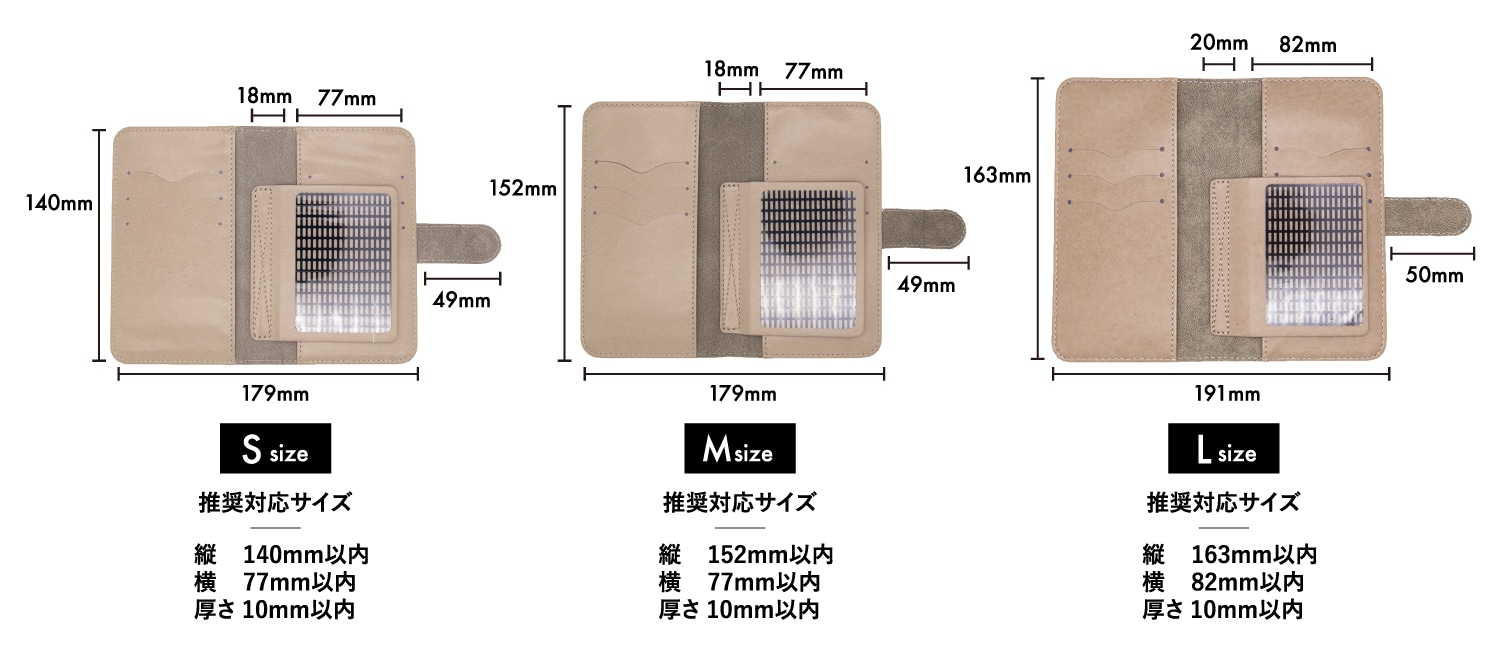 – 縦140mm・横77mm・厚さ10mm以内のスマートフォン