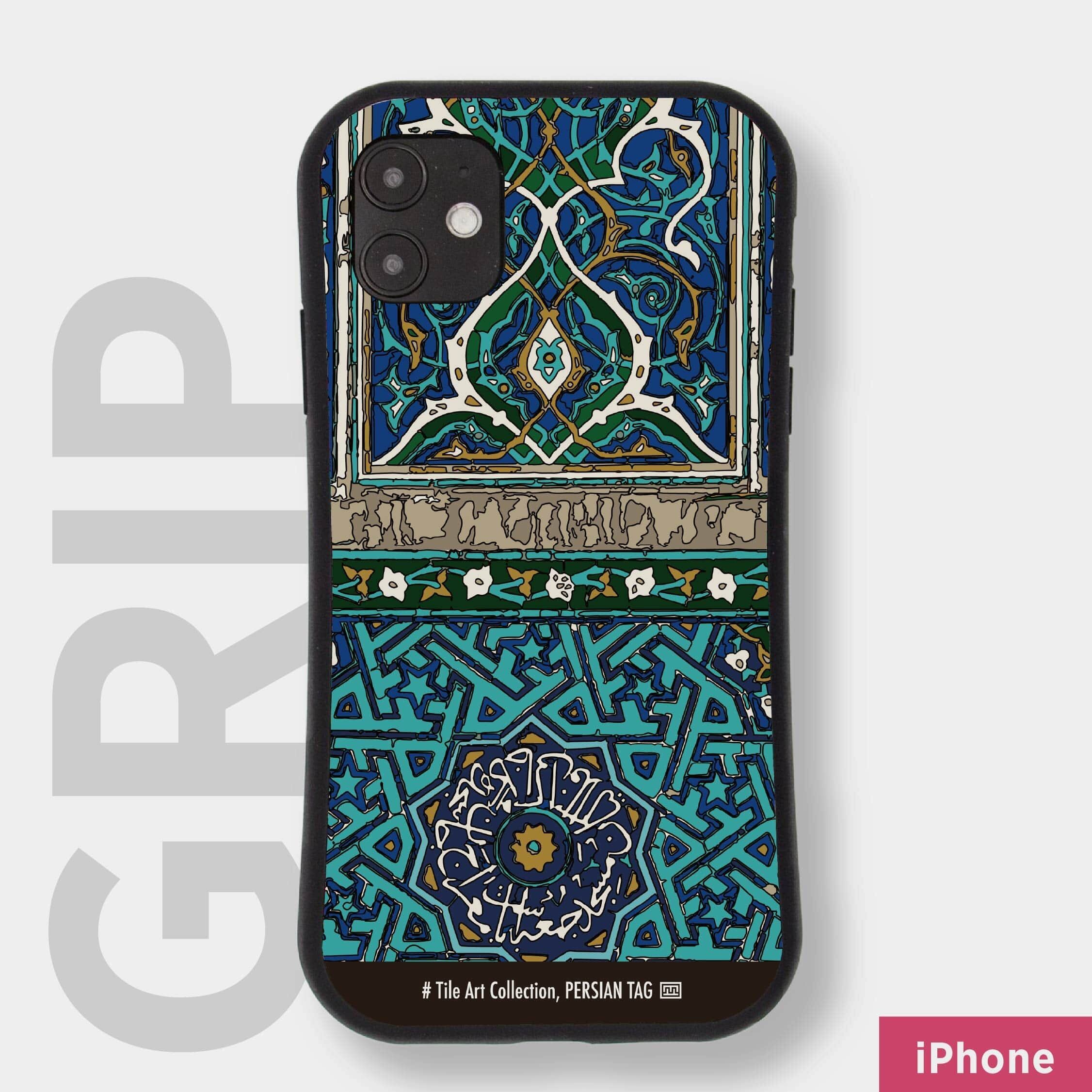 ## Oasis / Jameh Mosque of Yazd イランでも最も歴史のある街のひとつ、ヤズドのジャーメモスクのタイルアートをサンプリング。 鮮やかなターコイズブルーをベースにした、クールで気品が漂う幾何学模様のデザインは、砂漠の街・ヤズドに造られたオアシスのよう。 ![ヤズドのジャーメ・モスク](https://base-ec2.akamaized.net/apps/item_layout/images/tmp/img_51d081aa22e0abefc5e9106f237b9337.jpg) Persian Art Galleryの各モデルのご紹介は、こちらのページも是非お読みください。 ■PERSIAN ART GALLERYのモデルはどんなところ? [https://library.persiantag.shop/persian-art-gallery-model](https://library.persiantag.shop/persian-art-gallery-model/) ## グリップケースの特徴 ![グリップケース|Oasis](https://base-ec2.akamaized.net/apps/item_layout/images/tmp/img_db358c54500309a966e57911b56c82c7.jpg) * 高精細UVインクジェット印刷による鮮やかな発色 * 丸みを帯びたラウンドボディで持ちやすさ◎ * 側面のTPUラバーが落下などの衝撃を吸収し、大切なスマホを保護 * ディスプレイ面のフチで、画面が地面に接しにくくキズを防ぐ * 背面も適度な厚みがあり、カメラの部分を保護。 * ストラップホール付(背面右下) ## 素材 ケースカバー:耐衝撃TPU(ウレタン樹脂) ケース背面:ポリカーボネート ケースタイプや仕上げの詳細は、こちらのページも是非お読みください。 ■ケースタイプ別の特徴 [https://library.persiantag.shop/casetype/](https://library.persiantag.shop/casetype/) ## ご出荷までの日数 本シリーズは、より多くの方々にお好みのデザインやサイズに合った商品をご提供できるよう、完全受注生産にて承っています。 その為、お客様のお手元に届くまで1〜2週間ほどのお時間を頂戴しますが、ご了承くださいませ。 ### 出荷までの目安 **スマホケース / Tシャツ / トートバッグ / マグ / クリアポーチ / コンパクトミラー** →お支払い手続きから5~7日営業日(土日祝除く)で出荷 **アクリルキーホルダー / アクリルマグネット / エコバッグ** →お支払い手続きから7~9日営業日(土日祝除く)で出荷 出荷後、概ね翌日もしくは翌々日にお届けいたします。(沖縄・北海道・離島など、地域によりお届けまでもう少々お時間頂く場合がございます。) なお、ご注文状況によって出荷時期が前後する場合はメールにてご連絡させて頂きますので、ご了承くださいませ。 ## 配送方法 ・日本郵便の「クリックポスト」か「ゆうパック」で配送致します。  ご注文手続きの際にお選び頂けます。 ### クリックポスト * 送料:全国一律300円 * 配達方法:郵便受けに配達 * 追跡番号:メールにてご送付 ### ゆうパック * 送料:全国一律850円 * 配達方法:受け渡し * 追跡番号:メールにてご送付  **※10,000円以上のご注文は送料無料!** ## ご注意事項 * 本ページの画像は仕上がりイメージを含みます。 * 実際の印刷の仕上がりイメージなどは「ケースタイプ別の特徴」のページにてご紹介しておりますので、ご参考ください。  →[https://library.persiantag.shop/casetype/](https://library.persiantag.shop/casetype/) * 機種によりケースサイズが異なりますので、周囲のデザインの切れ方なども若干変わります。 * その他ご不明点などございましたら、本ショップのお問合せフォームよりお問い合わせください。